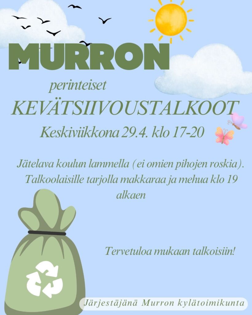 Perinteiset Kevätsiivoustalkoot ke 29.4.2026 klo 17-20